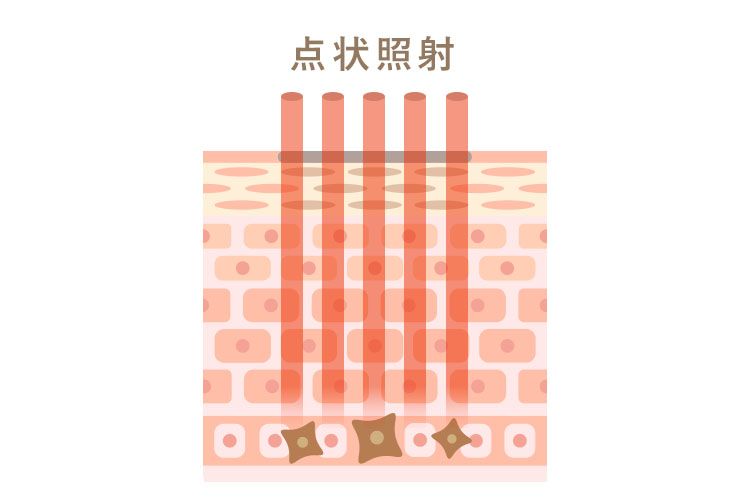 一方、ルビーフラクショナルは、ドット状の細かい点の集合体としてレーザーを照射する技術を採用。これにより熱の発生を大幅に抑え、次のようなメリットが得られます。